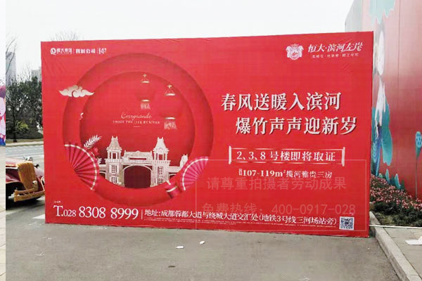 房地产行业每年最具销售高峰期,莫过于年末期,返乡客群量大,成交几率高,并且市场竞争激烈,因此每一家楼盘销售中心都会提前打好防御战。对营销中心进行案场氛围包装设计及现场广告物料布置,其目的是营造节日氛围,提升现场人气,强化项目形象,扩展口碑效应。下面我们四川零贰捌成都房地产广告公司就以我们为恒大某楼盘项目的案场包装案例来为大家介绍一下: