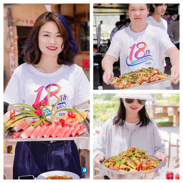 厨艺大比拼:平日里伏案工作的伙伴们纷纷亮出绝活——麻辣鲜香的青椒鸡、酸爽开胃的泡菜鱼、焦香四溢的竹筒饭,连简单的炒时蔬也藏着“家的味道”;美食共享时刻:围坐田间长桌,交换菜品、点评风味,一句“没想到你还有这手艺!”拉近了彼此距离。烟火缭绕中,不仅是味蕾的盛宴,更是团队默契与温情的升温。