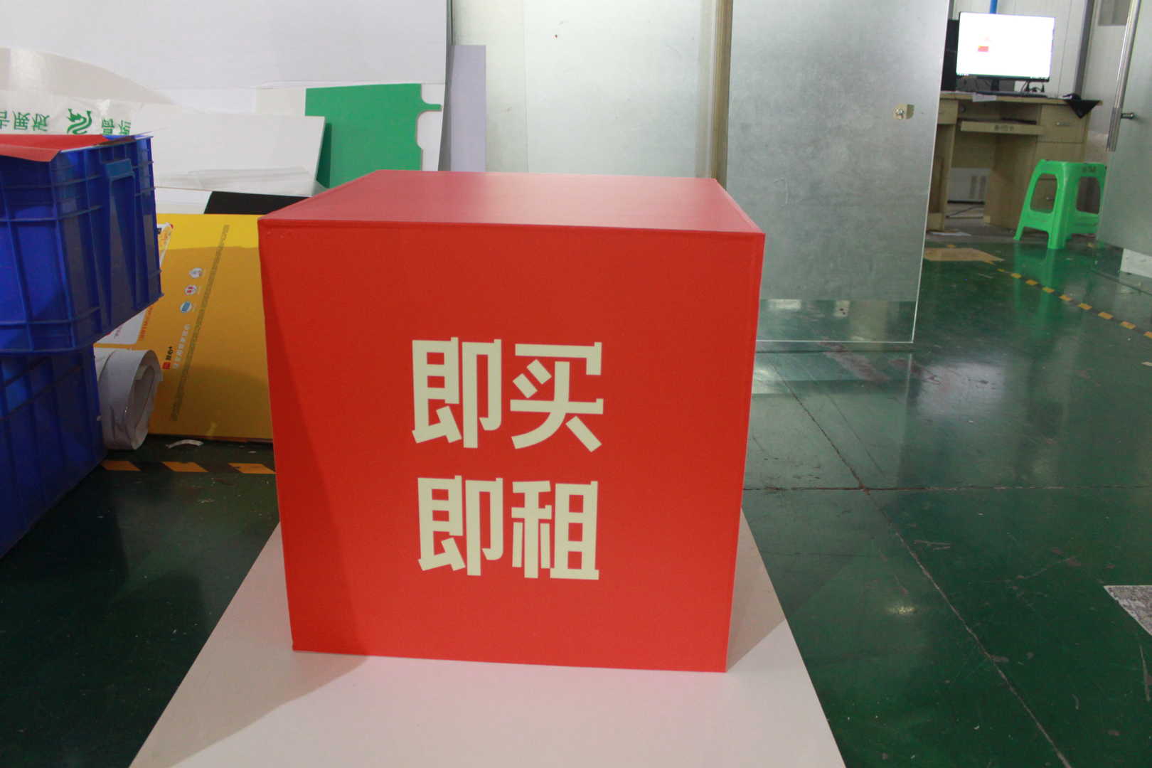 这次锦云里旺铺商业街销售营销广告盒子制作,采用了PVC材质背胶裱板的制作工艺而成,最后按尺寸切割粘贴合成现在的正方形盒子样式。