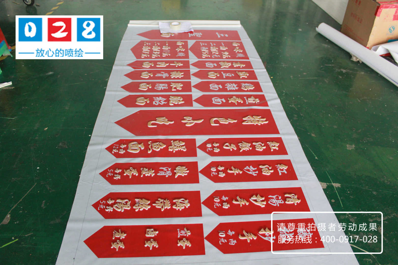 工艺采用:打印喷绘布作为安装底板,亚克力雕刻字粘贴底板制作而成。