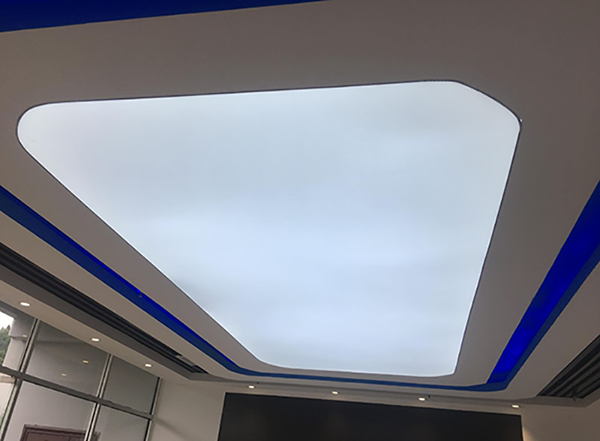3、软膜布的外形设计会比较的奇特一点,它不仅仅只是那种规规整整的图形,它可以根据客户的需求,或者设计的需要,制作出比较有艺术性的造型出来。当然,我们也不用担心它会变形之类的;